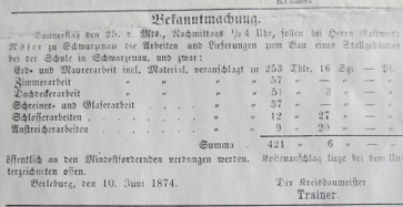 Es war üblich, dass Lehrer auch eine kleine Landwirtschaft betrieben, um sich versorgen zu können. In Schwarzenau wurde unmittelbar neben der Schule / Kirche 1874 ein Lehrerstall gebaut (heute noch Unterbau, bzw. Teil der Totenhalle / Friedhofskapelle).